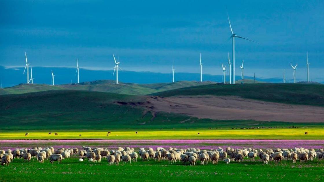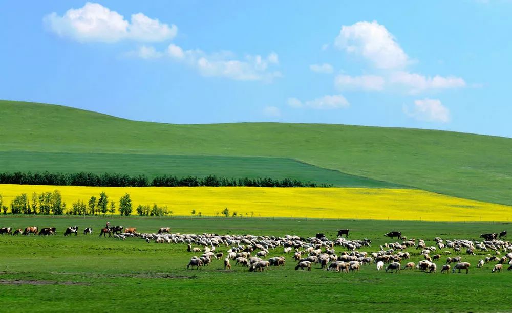 千里草原碧波涌,风吹草低见牛羊。